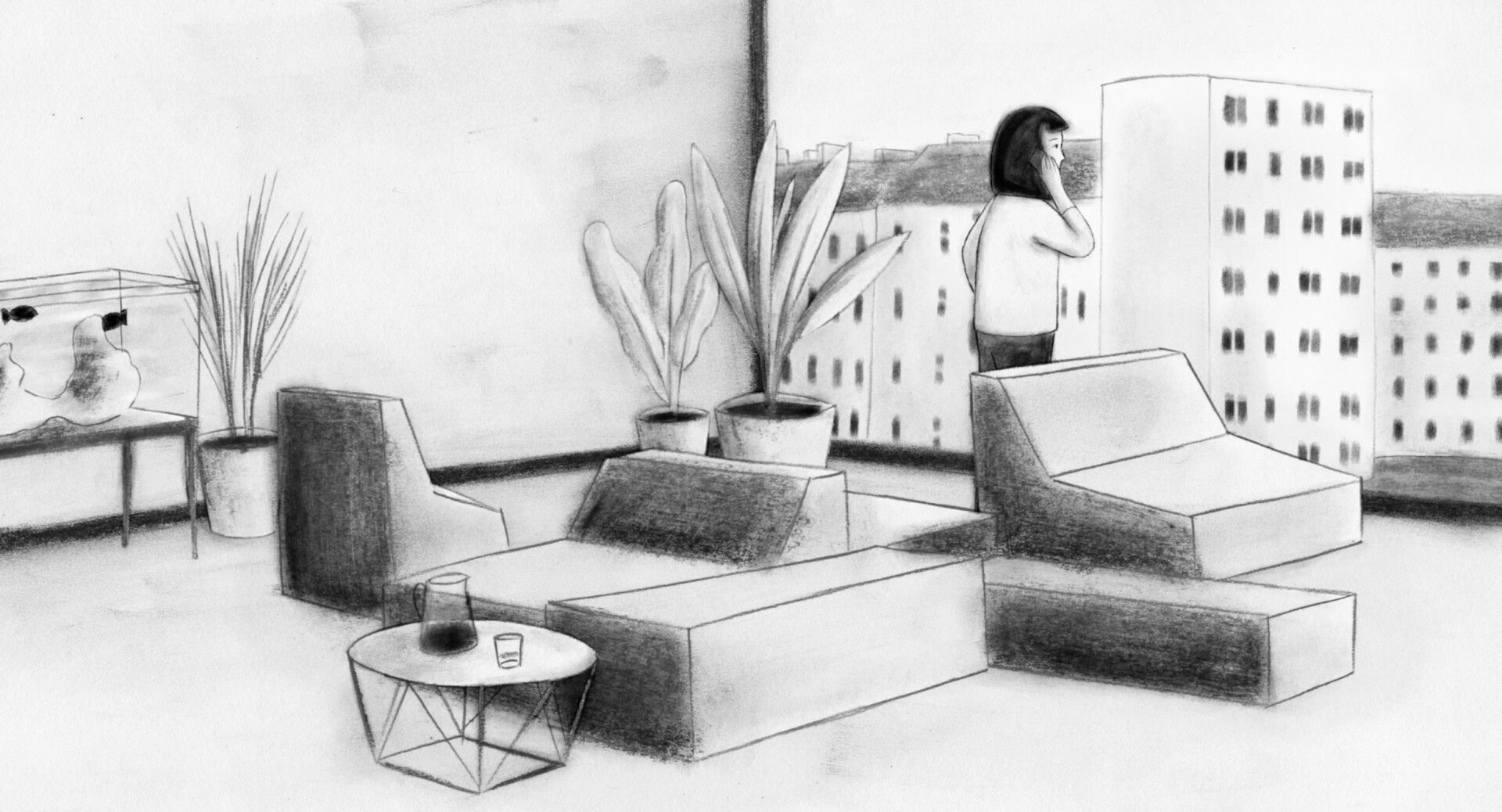 A young woman is stuck in the hold queue of a telephone hotline. A surreal episodic short film about the absurdities of urban life and the frustration of a paralysing standstill.